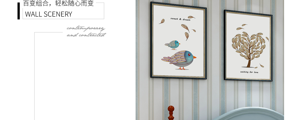 名稱:新中式沙發背景墻三聯掛畫-愛情鳥