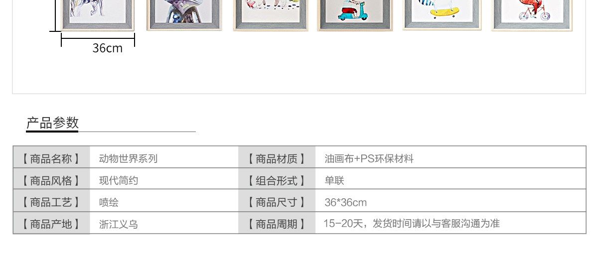 名稱:現代簡約兒童房卡通掛畫臥室床頭裝飾畫- 動物世界